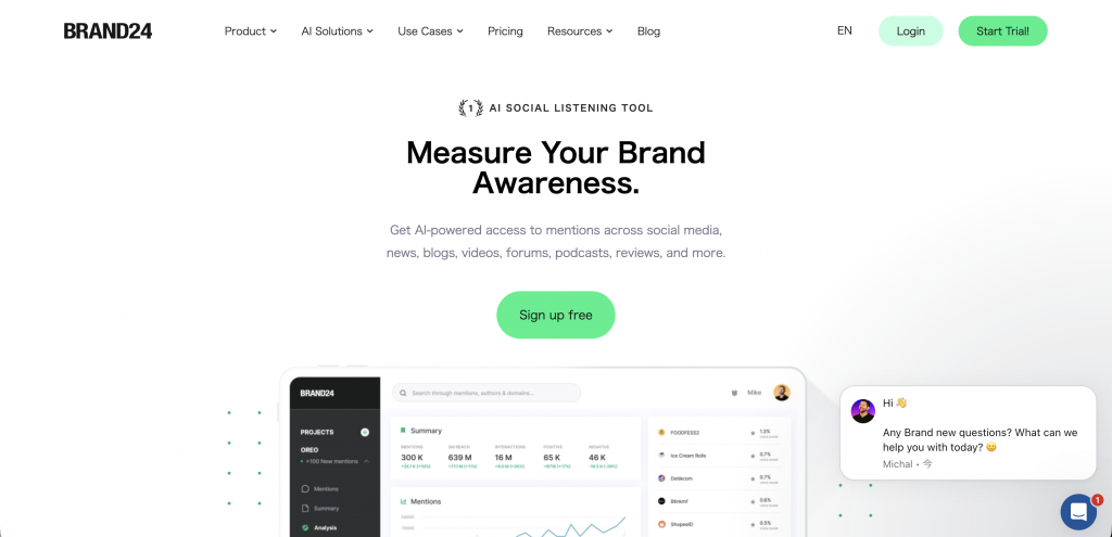 | Brand24 | Web上のブランド言及を監視。評判管理により信頼性を高める。 | Individual:約31,100円 Team:約46,700円 Pro:約62,400円 Business:約93,700円 Enterprise:約156,000円~ | 広報担当、ブランドマネージャー |