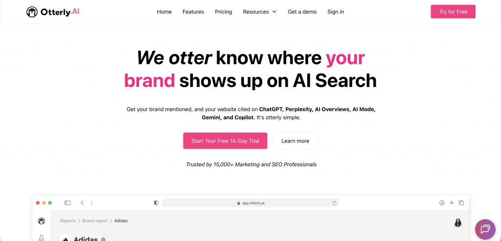 Otterly.AIは、ChatGPTなどのAIチャットボット内でのブランドの可視性を監視・測定することに特化したツールです。