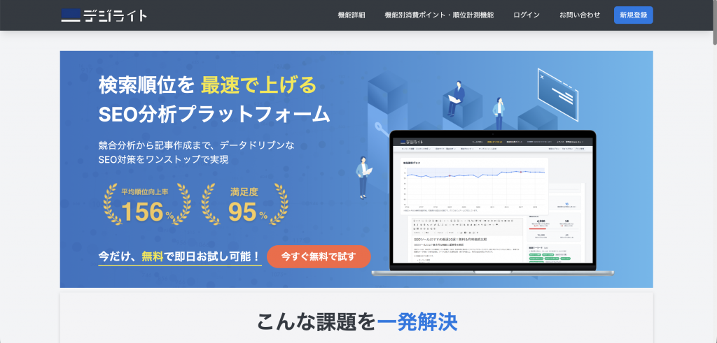 デジライトは、SEOに特化した記事構成案や本文をAIが自動生成してくれる国産のライティングツールです。