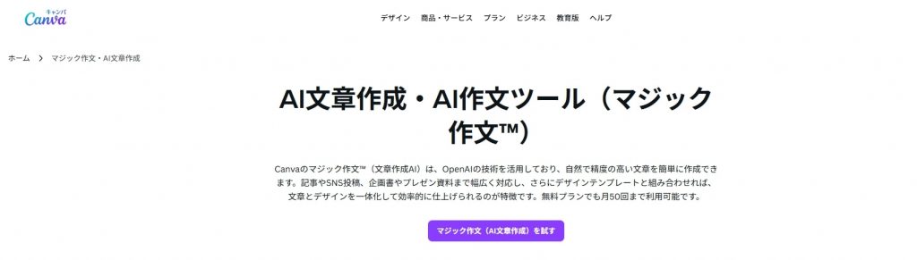 公式サイト | https://www.canva.com/ja_jp/magic-write/ |