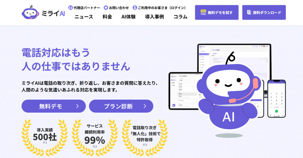 ミライAIは、AIを活用して電話対応を自動化し、企業の業務効率化とコスト削減を実現する画期的なサービスです。