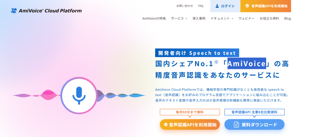 AmiVoice高精度な音声認識技術が特徴で、発話部分のみ課金。