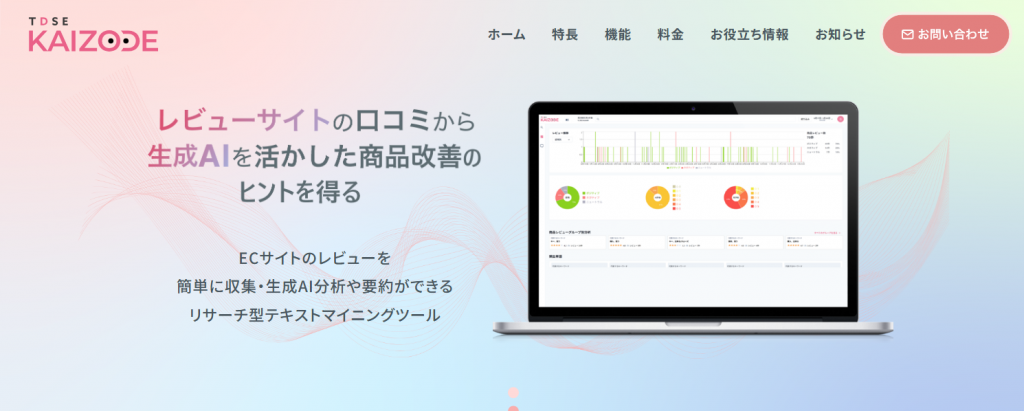 KAIZODEは、生成AIを活用してECサイトやSNSのレビュー・口コミデータを自動的に収集・分析し、消費者の感情やインサイトを6段階評価で可視化します。