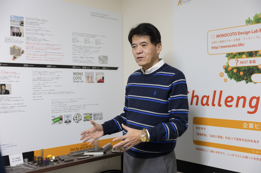 コシオカ産業株式会社は1964年、越岡氏の父が創業した金属部品関連事業からスタートした。創業の地は大阪。中小製造業が集積し、大手電機メーカーを支える町として知られてきた地域である。同社も当初は、電機メーカー向けの部品供給を担う一社として事業を展開していた。