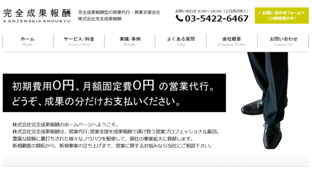 | 特徴 | ・年間4,200件以上のプロジェクト実績 ・業界No.1の成果報酬型テレアポ代行 |