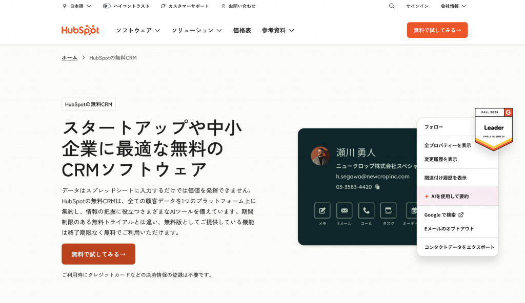 HubSpotは、HubSpot Japan株式会社が提供するMAツールで期間制限はなく無料で使用できます。