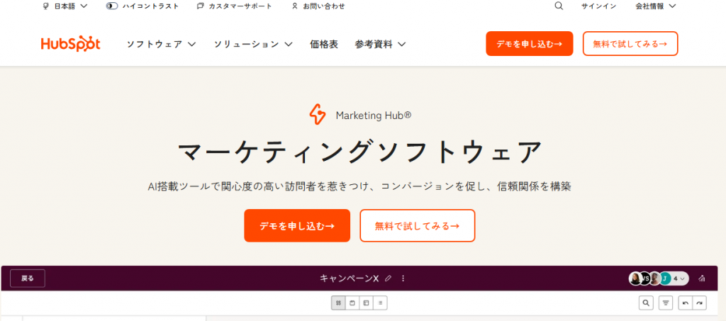 Marketing Hubは、米HubSpot社が提供する世界的なMAツールです。リードの収集からスコアリング、育成(ナーチャリング)までを一元管理でき、直感的な操作性の高さに定評があります。
