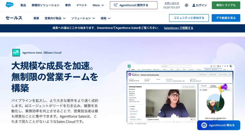 >>Agentforce Sales(旧Sales Cloud)に問い合わせる