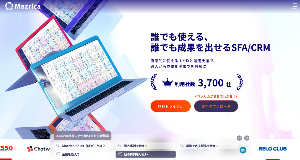 Mazrica Salesは、AIを搭載した国産のSFA/CRMです。過去の商談における成功・失敗事例をAIが分析し、「いつ」「誰に」「何を」アクションすべきかを具体的に提案してくれます。