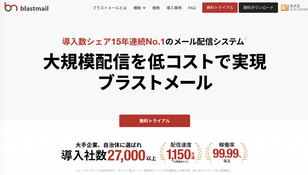 ブラストメールは、14年連続で国内導入シェアNo.1を誇る信頼性の高いメール配信システムです。
