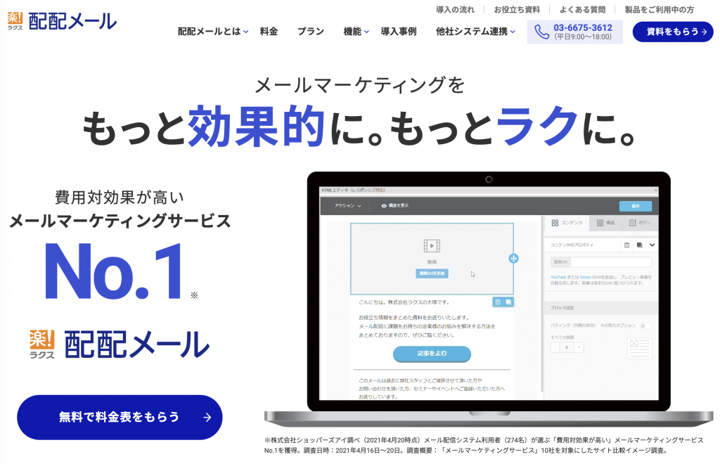 コストを抑えつつ、スピーディーにメールマーケティングを始めたい企業にとって、おすすめのサービスであると言えます。