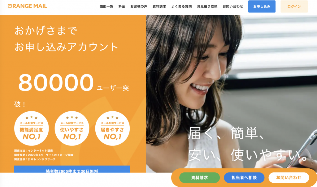 オレンジメールは、導入のしやすさと手軽さに特化したメール配信ツールです。