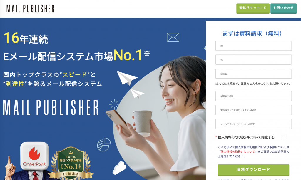 Mail Publisherは、4,100万通/時という業界トップクラスの配信速度を誇る、大規模配信特化のメールマーケティングシステムです。