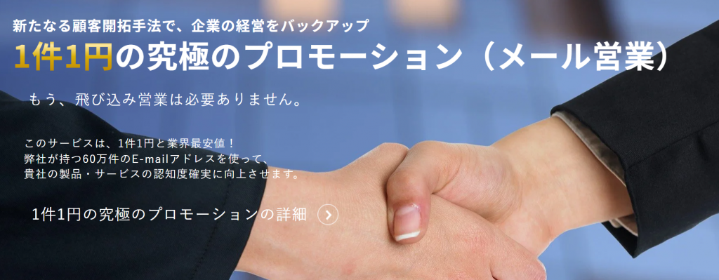 | エンカレッジ | 営業代行型 | リスト無料・1円/通 | 3,000件まで無料でリスト作成、メール代行1件1円 |