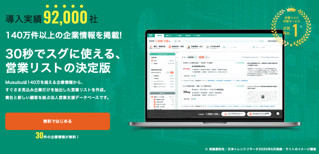 | Musubu | ツール型 | 月額45,000円〜 | 140万件超のDBと豊富な検索軸 |