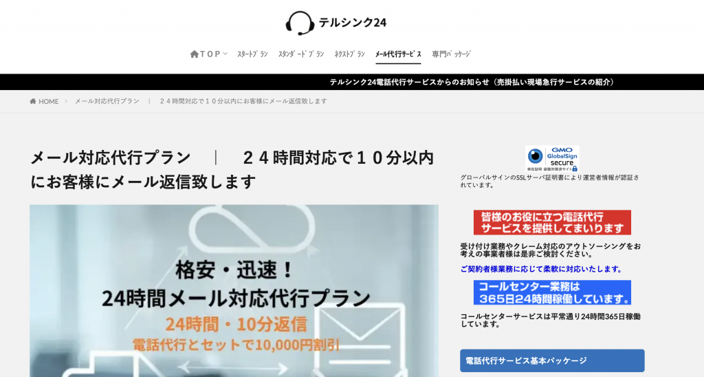 | テルシンク24 | 24時間365日対応の有人メール対応。スタッフが内容を目視で確認して回答。 | 14,800円〜+1件100円~400円 | 有人対応で信頼性を高めたい企業 | https://tel-think.com/wp/mail.html |