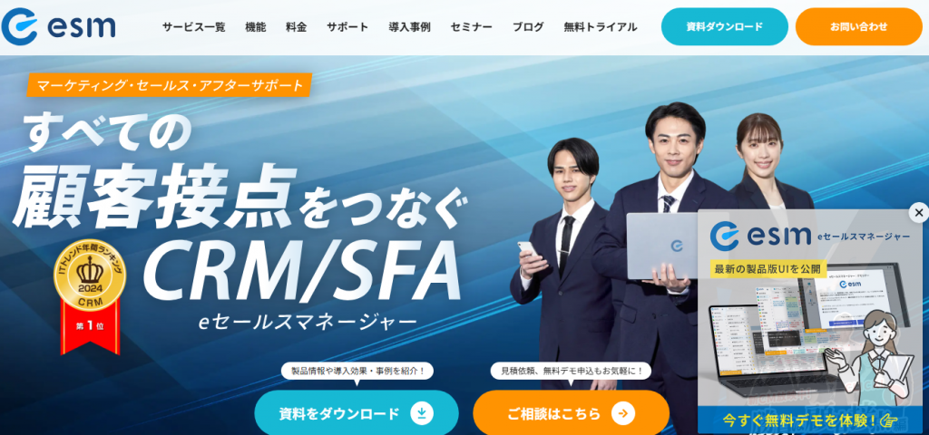 「esm(eセールスマネージャー)」は、営業支援(SFA)・顧客管理(CRM)・マーケティングオートメーション(MA)を一元化したオールインワン型の新規営業ツールです。