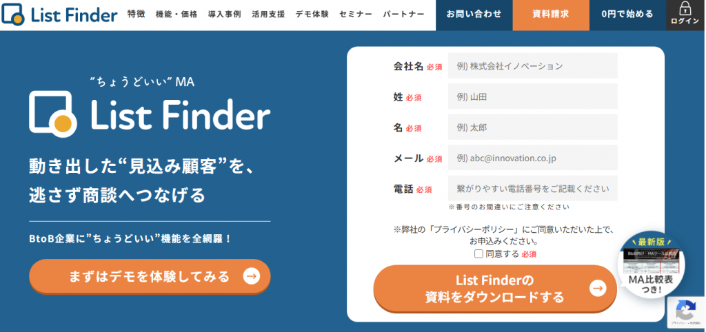 「List Finder」は、動き出した見込み顧客を逃さず、効率的に商談へつなげるBtoB企業向けの新規営業ツールです。